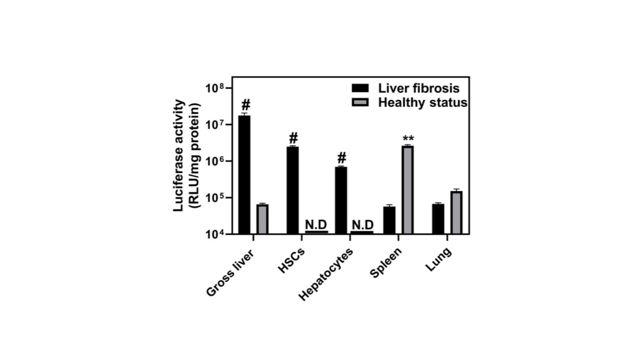 figure 4. Comparison of the functional delivery efficiency of FLuc mRNA by CL15A6 LNPs in healthy mice versus those undergoing liver fibrosis.