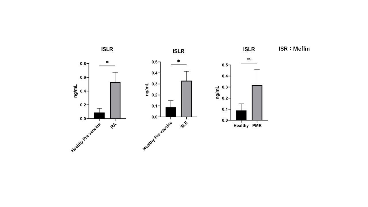 Meflin was increased in the plasma of patients with RA (rheumatoid arthritis), SLE (systemic lupus erythematosus), and PMR (polymyalgia rheumatica) compared to that of healthy individuals.